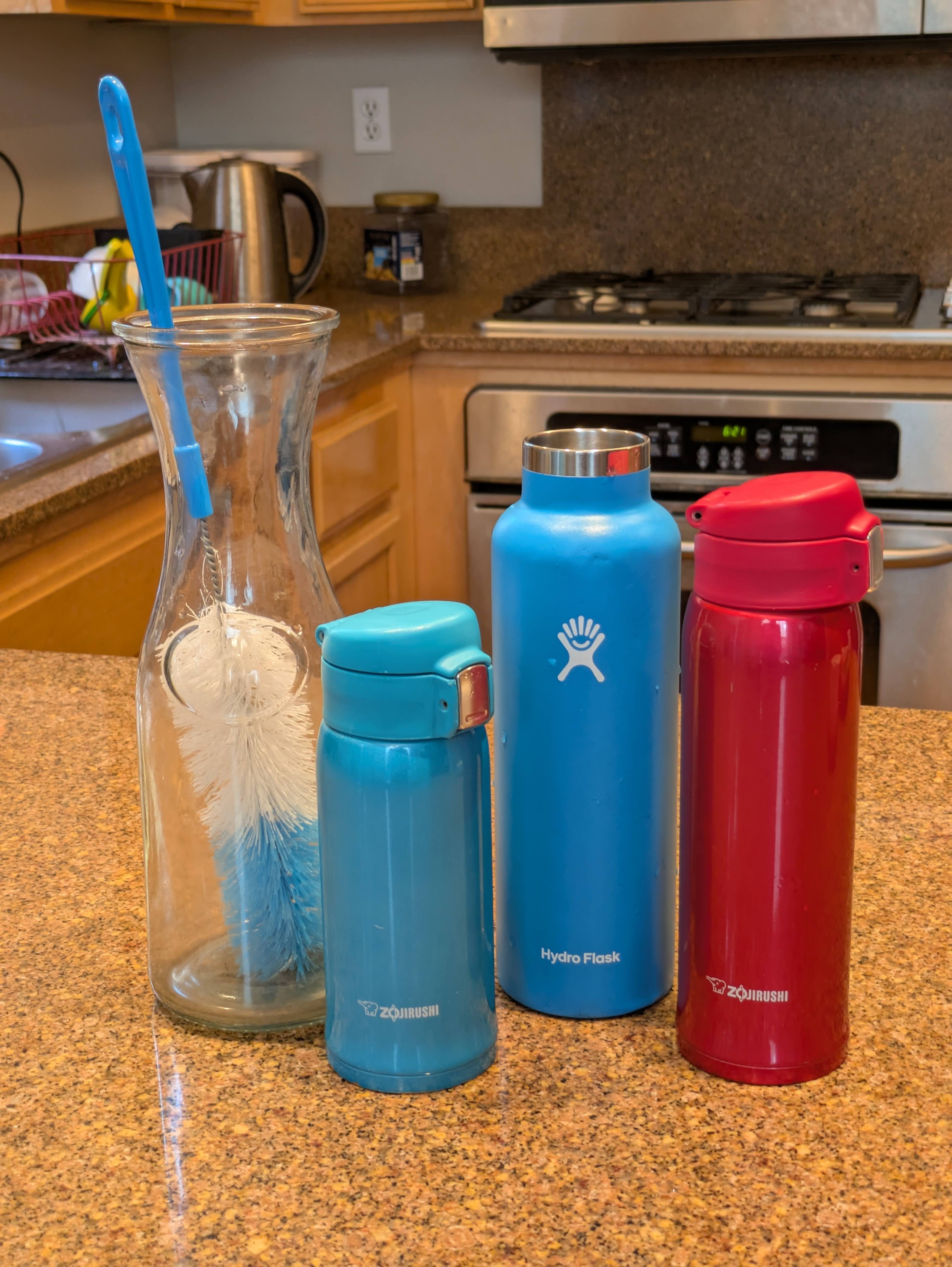 Since then, I have found many uses for these brushes: eradicating the superbug colonies incubating in my teenage daughter’s hydro flask, cleaning out my sun tea pitcher (see earlier post), and getting deep into my beloved Zojirushi to clean out stubborn coffee residue. Foggy flower vase? Try the brush.