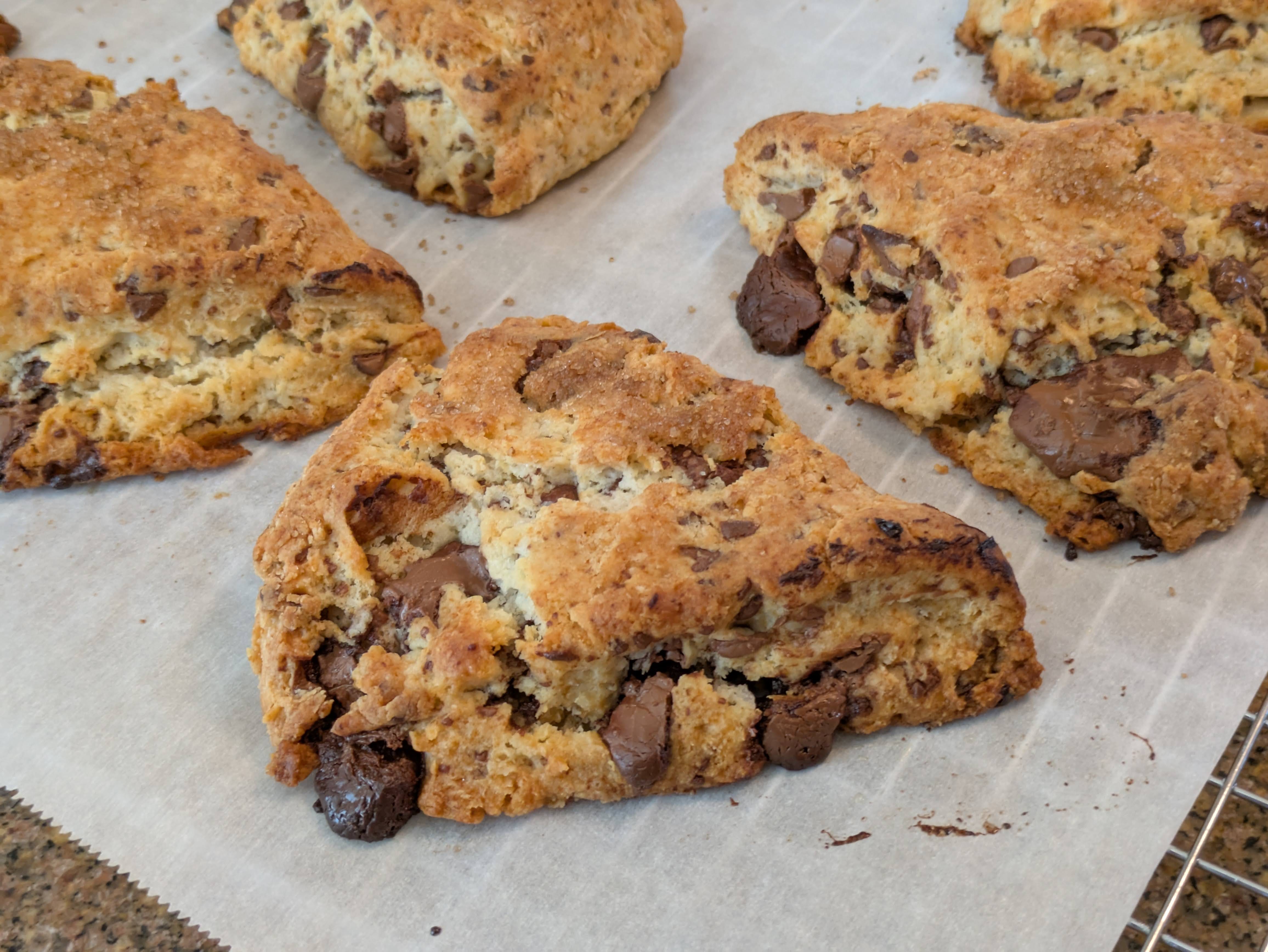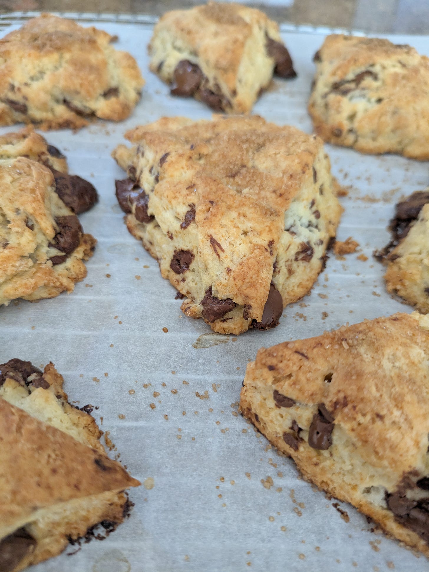 We started a tradition of afternoon tea during the pandemic. Something about these flaky, buttery scones with molten pockets of milk chocolate was deeply comforting. We enjoyed them with a hot mug of chai in Minnesota while snow storms swirled and howled outside.