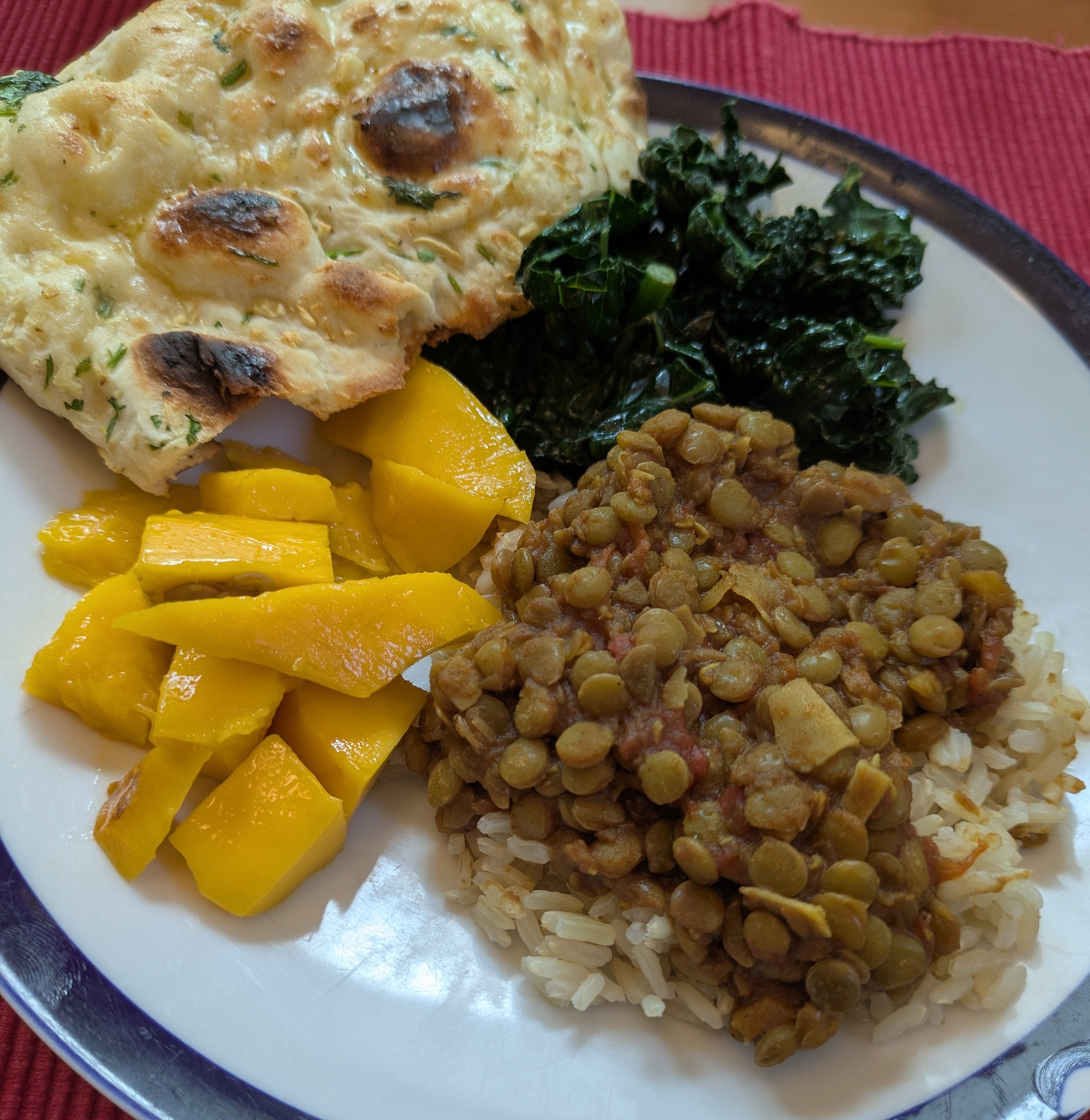 Serve hot over rice or with garlic naan on the side or both. I like serving with sautéed kale and juicy mango.