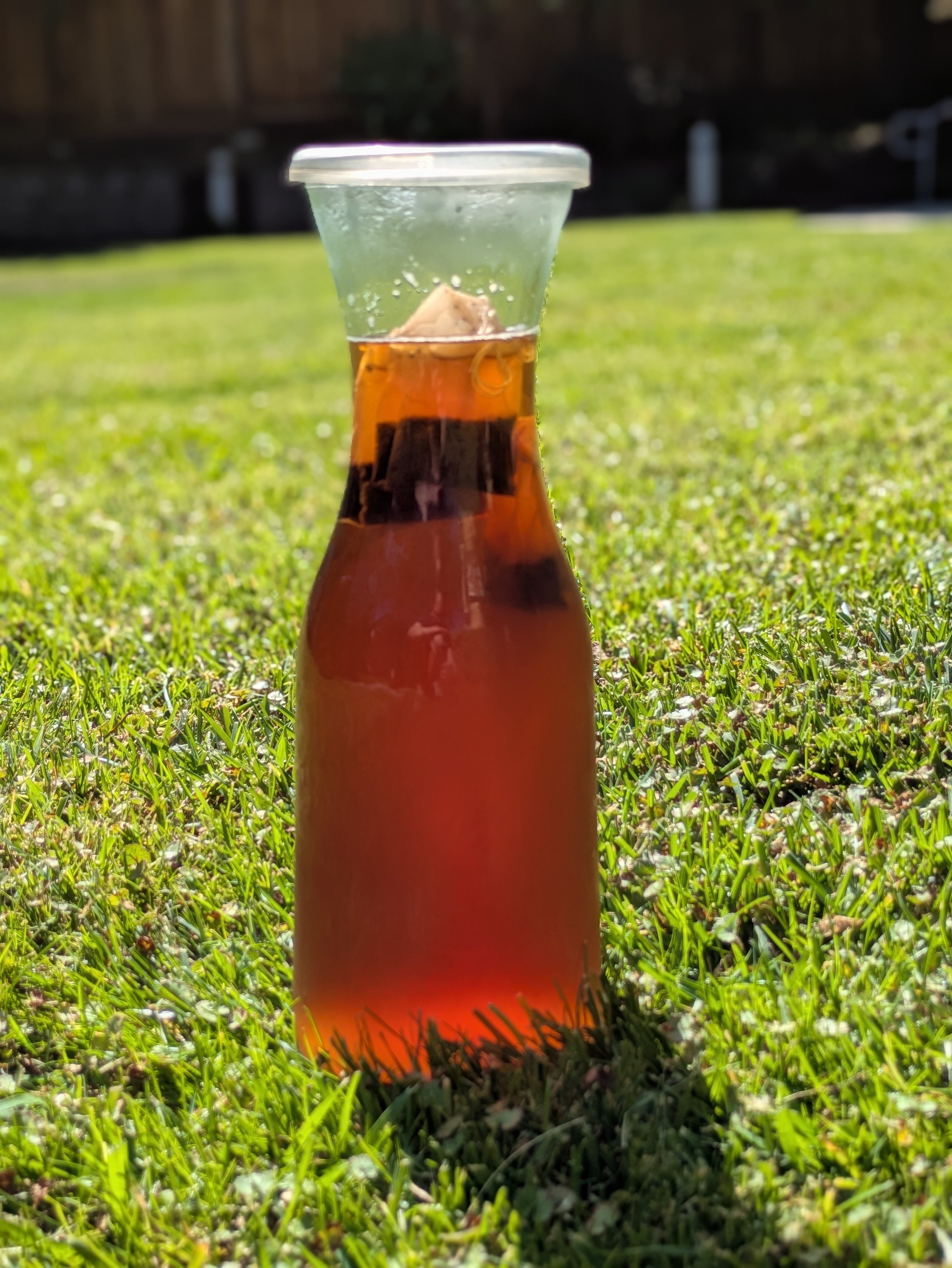 Growing up in the midwest, pitchers of sun tea sat on front stoops, deck tables, and front porch railings, brewing in the hot summer sun. The internet is filled with warnings about how dangerous sun tea is. Something about bacteria and food safety. I have tried to make this following food safety guidelines, steeping it in the fridge, but it never tastes as good as when I make it in the sun. Forty years of drinking sun tea hasn’t killed me yet, so I guess I’ll keep on keeping on.